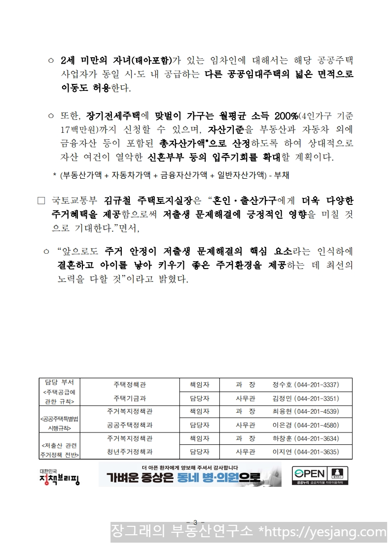 국토교통부 보도자료 - 신혼부부, 신생아 출간가구 내집마련 혜택 증대①